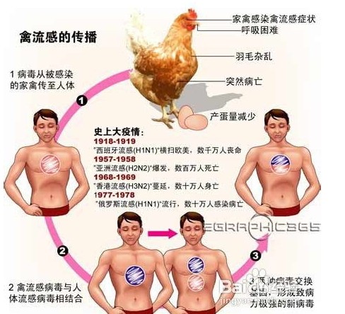1、禽流感病毒可通过消化道和呼吸道进入人体传染给人,人类直接接触受禽流感病毒感染的家禽及其粪便或直接接触禽流感病毒也可以被感染。通过飞沫及接触呼吸道分泌物也是传播途径。如果直接接触带有相当数量病毒的物品,如家禽的粪便、羽毛、呼吸道分泌物、血液等,也可经过眼结膜和破损皮肤引起感染。