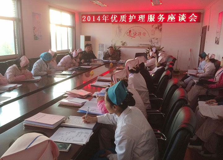 2014年11月14日下午三点半,淮南东方医院集团总院2014年优质护理服务座谈会在行政楼四楼会议室召开,会议由护理部主任刘敏主任和刘艳华主任主持,大内科、大外科护士长和各病区护士长参加了会议。