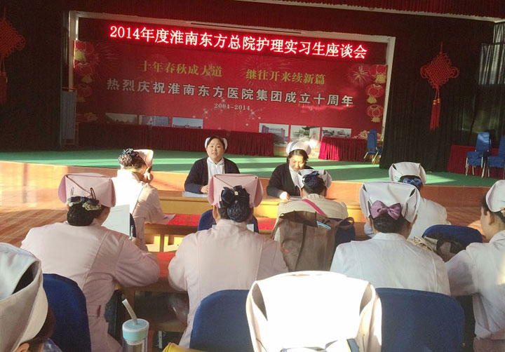 为了提高实习的质量,强化对实习生的管理,在10月下旬护理部举行召开了2014年实习护士座谈会。座谈会在东方总院行政楼多功能厅举行。会上同学们踊跃发言,护理部主任及淮南卫校和淮南职业技术学院的护理专业和助产专业共七十余人参加了这次座谈会。