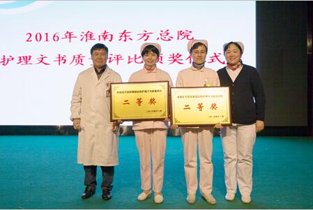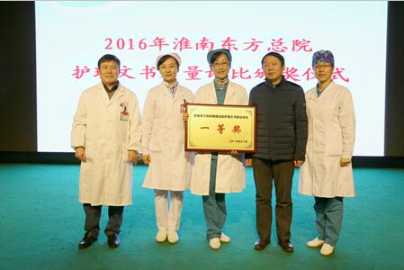 为保障医疗护理安全,激发护士的团队合作精神和工作积极性,我院护理部于12月份举办了“护理文书质量评比”竞赛。比赛以科室为单位,以最新版《护理文书书写规范》为评分标准,每科随机抽取2份运行病历,重点检查危重、一护、手术后、入院3天后的病历,评分结果按照2016年1-10月归档病历质量占50%,1-10月归档病历数量占10%,12月份运行病历质量占40%计算,由护理部刘敏主任、刘艳华副主任、病案室陈红护士长等8位护理专家本着客观、公平、公正的态度进行严谨细致的检查,共评选出一等奖一名(ICU);二等奖两名(呼吸科、CCU);三等奖三名(骨科、妇产科、儿科),特邀请护理部分管院长詹一朝、ICU主任金保贵、护理部副主任刘艳华、以及各位评委专家为获奖科室颁奖。 通过此次竞赛,加强了我院护理人员对护理文书的认识,进一步提升了护理文书内涵,全面提高了护理文书质量,同时各位护理专家评委们对文书书写中出现的常见问题提出了改进意见和措施,统一了标准,进一步规范了护理文书的书写要求。