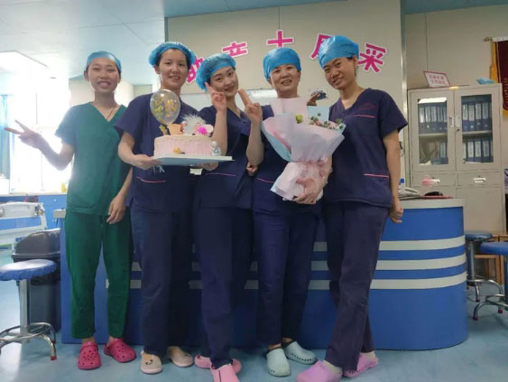 5月12日上午东方总院护理部及院领导将节日的鲜花、蛋糕与祝福送给分娩中心的助产士们,向他们辛勤的工作表示慰问,收到节日祝福的助产士们笑靥如花,如玫瑰一般美丽而娇艳。