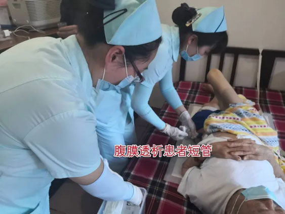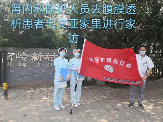 肾内科黄金波主任、邱璐护士长以及蔡青护士来到己到腹透短管更换时间但由于股骨颈骨折不能来院进行腹透的高龄患者毛文亚甲家中进行了一次特殊的家访。家访中不仅对患者近期在家的一般情况(如饮食睡眠情况,超滤量,隧道口情况,血压情况等)居家腹透房间布局及紫外线的使用是否合理,还对腹透患者家属手卫生、腹透操作流程,隧道口护理,腹透液存放以及废液的处理等环节进行督察。并为患者更换腹膜透析短管,指导家属预防压疮的护理方法。患者及家属连连感谢,称赞东方医院是最负责的医院,最为病人着想的医院!