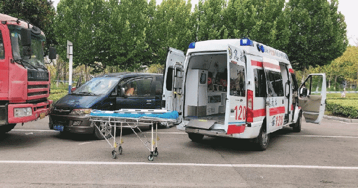 下午2点30分,接到120急救中心指派电话,总院派出急救车前往山南新区壹代城附近接救车祸伤员。