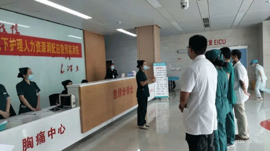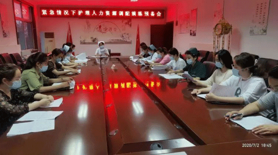 演练前,为了使本次演练顺利开展,7.2下午六点,护理部召开了护理应急小组会议以及演练筹备会议,会上护理部刘敏主任就演练的脚本进行具体解读,详细介绍了演练方案、明确了人员分工、物品的准备,提出演练目标。急诊科护士长徐玲玲组织和指挥,指导大家进行了排练和彩排,协调演练的步骤和进度。