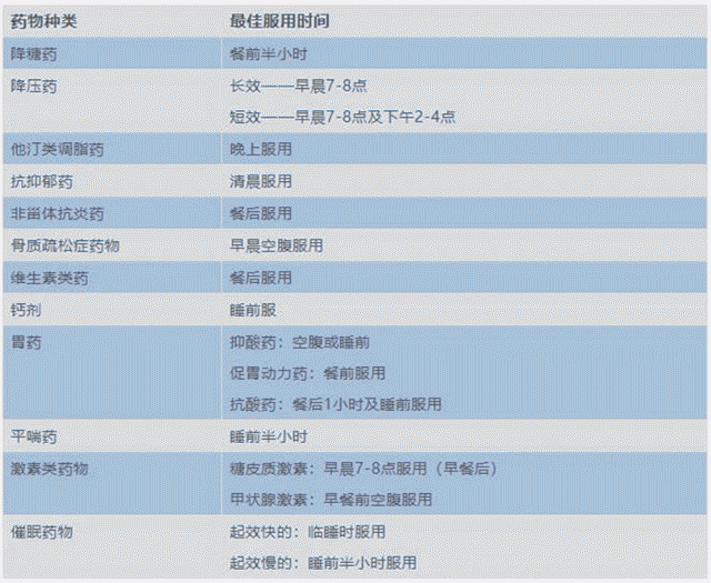 11类常用药物的最佳服用时间