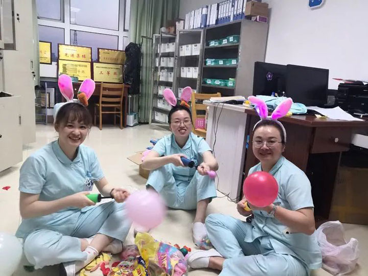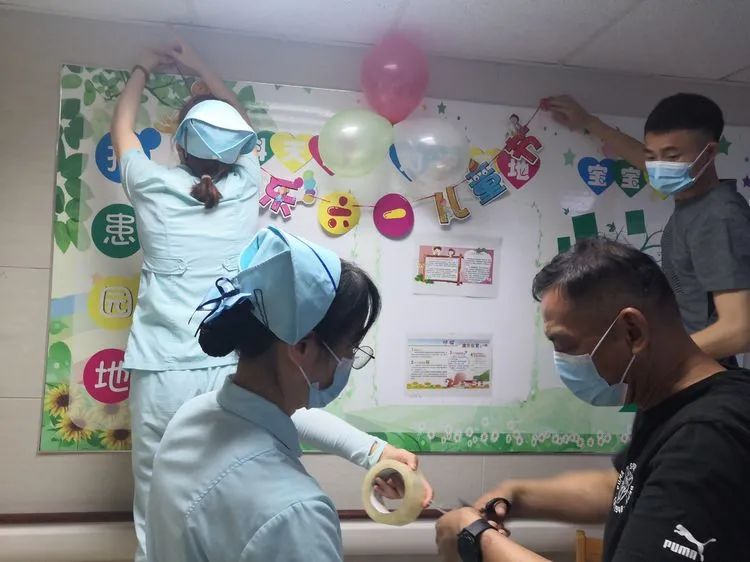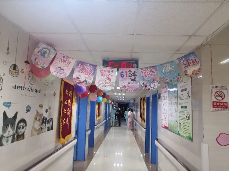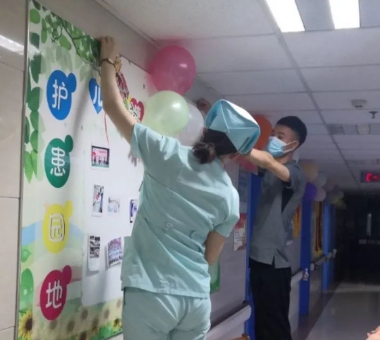在儿科全体医务人员的精心筹备下,五彩缤纷的气球、彩带将病区烘托得温馨可爱,处处洋溢着欢乐的气息,消除了孩子的恐惧心理。