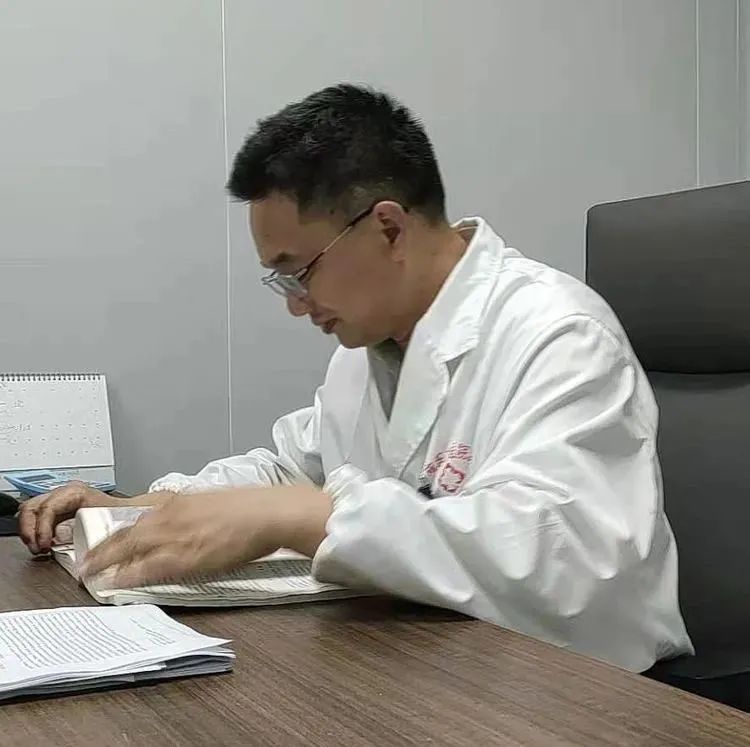 由于长期办公整理资料,就在今年5月份,张世武主任左腿形成了下肢深静脉血栓,就诊于本院介入科,每天需要进行三次溶栓治疗。为了最大程度确保工作正常进行,他每天早晨溶栓治疗后又挪回科室继续工作,夜里也是在医院休息。