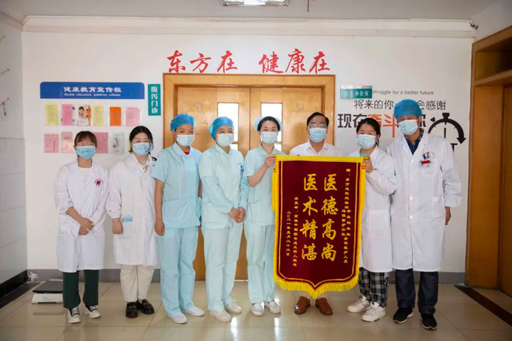 患者刘女士年近六旬,患乙肝后肝硬化失代偿期,脾功能亢进,反复消化道出血,大量胸腹腔积液,病情危重,遭多次下病危,家属数次放弃治疗……余永胜主任带领医护人员积极安慰家属,开导患者,树立他们与病魔抗争的决心;同时,积极予以胸腹腔穿刺、放胸水及腹水处理,改善患者胸闷及腹胀症状同时予以止血、抗病毒治疗,经过努力,患者病情逐渐稳定改善,经过一段时间综合治疗后,患者好转出院。“通过随访,患者现在生活良好,每次接到电话都忍不住连连道谢……”