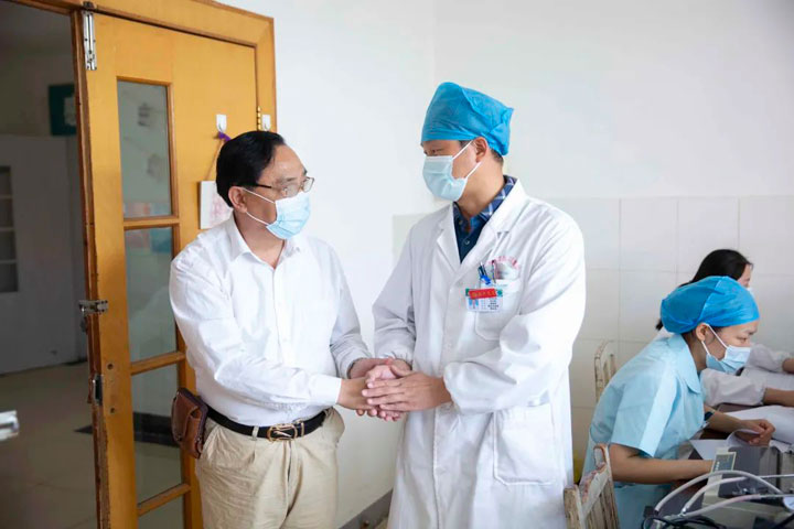 2018年初夏的一天,一名患者呻吟着来到感染科主任余永胜面前。“大夫,我好难受!全身没有力气,几天吃不下饭,小便像浓茶水一样,医生,我是不是要死了,求你救救我……”原来,患者出现纳差、乏力、尿黄等不适症状已有5天了,谷丙转氨酶6881U/L(正常值40U/L),谷草转氨酶 7758U/L(正常值 42U/L),如此之高的转氨酶,提示病情危重。住院后,余主任积极完善相关检查,次日便明确诊断“急性黄疸型戊型病毒性肝炎”,本病来势凶猛,病情进展快,即使积极治疗,病情仍有可能进展,发展至重肝风险高,病死率高。余永胜把“密切观察患者的临床症状,动态监测相关指标、加强患者心理护理、及时调整治疗方案”作为治疗重点,果断采取措施,仅仅半个月时间,患者便痊愈出院了。出院时,患者拉着余永胜等人的手由衷地感谢:“你们治了我的病,也卸下了我的心理包袱,谢谢你们不知说啥好!”而家属更是送来了一面美丽的锦旗……