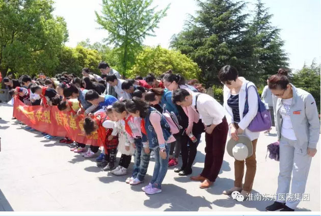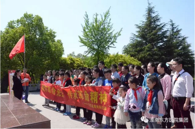 2017年4月23日上午八点半,淮南东方医院集团总院内科党支部全体党员同志在党支部任梅书记的带领下前往上窑新四军烈士林园,开展“缅怀革命先烈,传承革命精神”的党员活动日活动。部分职工还特别带上了已成为少先队员的孩子们,进行爱国主义教育活动。