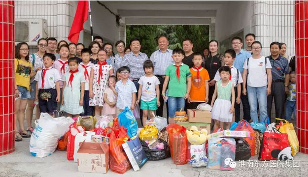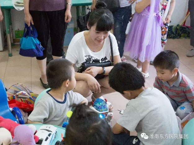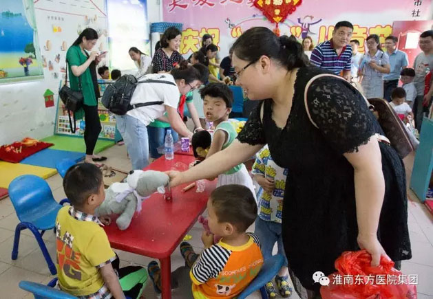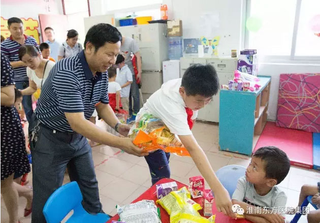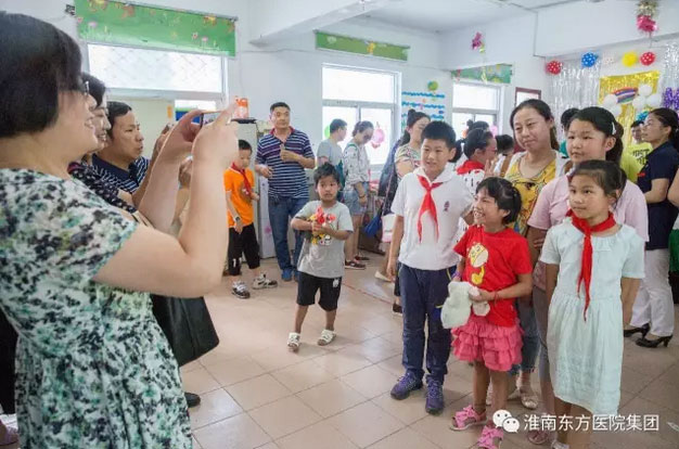 “六一”儿童节下午,东方医院集团董事长江鸿方带领总院的40余名志愿者前往市儿童福利院看望那里的孩子,在这个属于他们的儿童节里送上祝福和慰问。部分医护人员们还带上了自己的孩子,一起与福利院的儿童们共渡这个同属他们的节日。