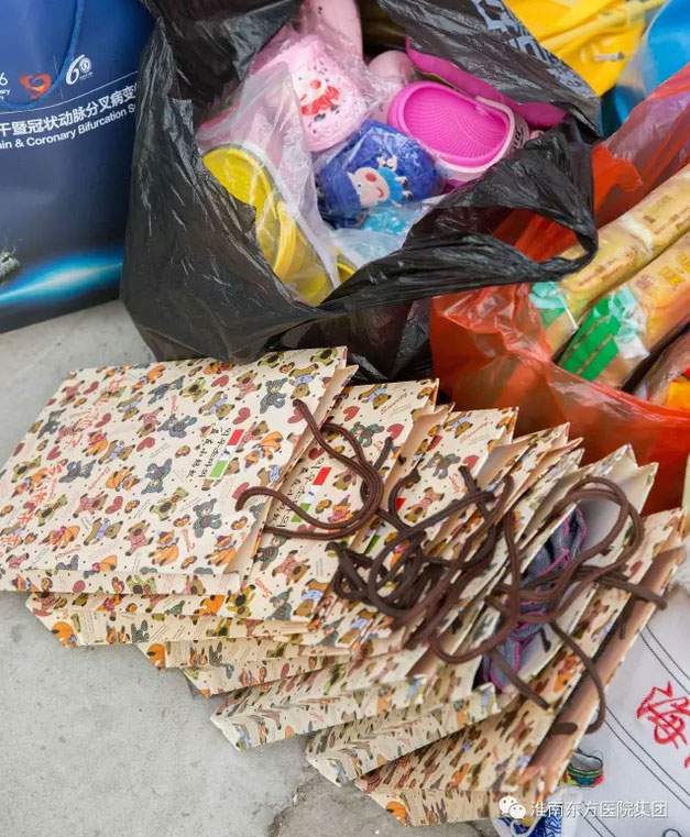 当天下午,市儿童福利院里欢声笑语,暖意融融。总院内科支部书记任梅代表东方医院集团特意为小朋友们准备了搭配好的新衣服、新鞋子,还有可口的零食,儿科廖红光护士长为孩子们带了一大包玩具和书本,我们的少先队小志愿者们还带来了自己最喜欢的玩具送给这里的小朋友,还有许多东方总院的志愿者都带了许多小礼物......