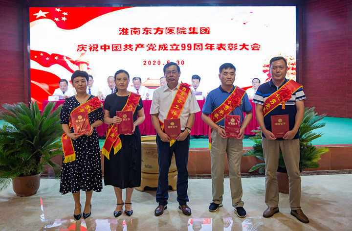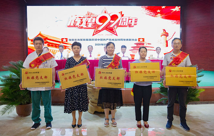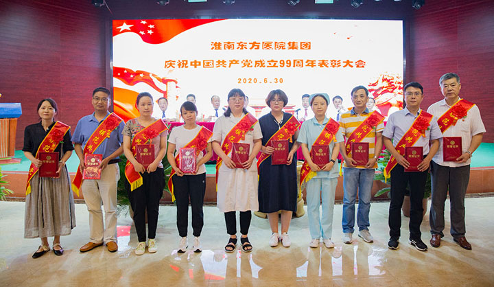 集团领导为五个红旗党支部、七个五好党支部、五位优秀党务工作者、十位模范共产党员颁发了奖项。其中总院外二党支部、总院机关党支部、肿瘤医院内科党支部、谢一医院临床党支部、康宝党支部荣获“红旗党支部”称号。总院内一党支部、肿瘤医院门诊支部、凤凰医院外科党支部、新庄孜医院门诊党支部、潘三医院党支部、济民医院党支部、谢桥医院后勤党支部荣获“五好党支部”称号。任梅、缪学志、姚军、陈耀光、段松颖荣获“优秀党务工作者”荣誉称号。孙敏、程家凤、王翀、肖枚生、张刚、罗友淮、贺宇、赵倩、李洁、夏宁红荣获“模范共产党员”荣誉称号。