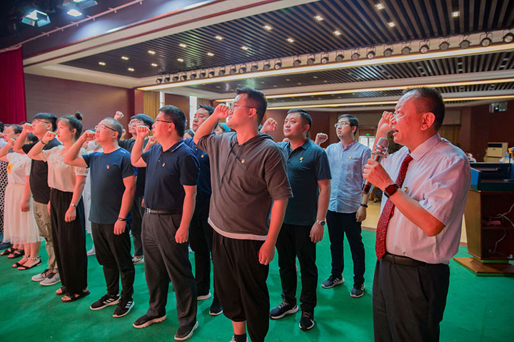 集团董事、总院院长王多为同志带领60位预备党员怀着崇敬的心情坚定地举起右手,庄严宣誓。