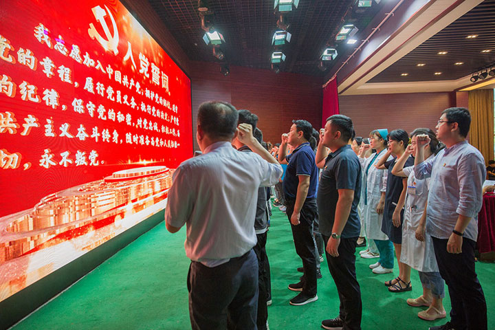 最后,江鸿方董事长动情地号召大家,今天借着党的生日,希望全体党员干部群众齐心协力、攻坚克难,化“冰山”、跨“火山”、攀“高山”,实现医院集团明天的辉煌!