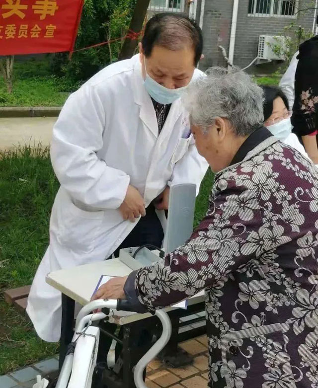 几位腿脚不方便的老人说:“现在党的政策真的是好,像我们这种腿脚不利索的老人,你们来到家门口为我们体检,让我们随时了解到自己的身体状况,真是方便。”