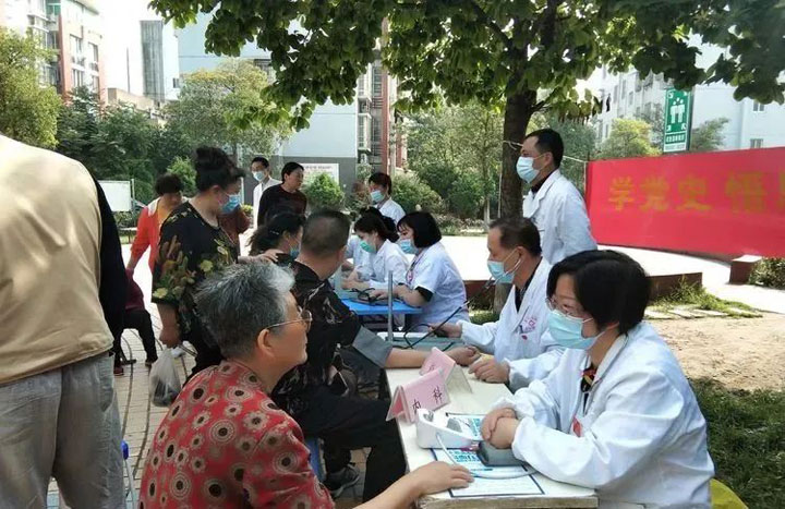 党员同志们为居民测量血压、听心肺,询问病史、服药情况等,认真询问个人健康状况,详细指导老年人用药、饮食及功能锻炼,并为群众解答疑惑。同时,宣传普及常见病、多发病、慢性病等健康教育知识和新冠病毒疫苗接种相关知识。