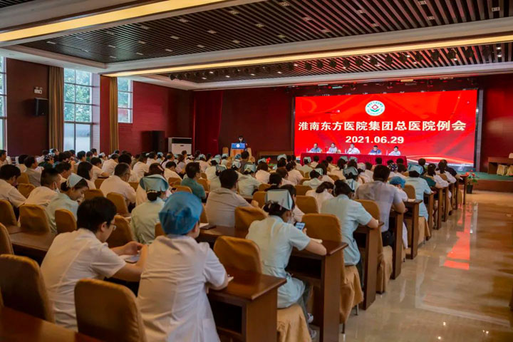 在即将迎来建党100周年华诞之际,江永强董事长深情地表示,中国共产党能有今天的辉煌成就,是无数仁人志士和革命先烈抛头颅洒热血,用生命换来的。党始终把全心全意为人民服务作为党的根本宗旨。在疫情防控期间,党和国家为了维护人民的生命健康做出了巨大努力,为新冠患者免费治疗,为全民免费接种新冠疫苗,这些没有其他哪个国家可以做到,但中国做到了。作为党员,作为中国人,我们必须要爱党、爱祖国,要讲党性,学好党史。作为东方人,我们只有爱国爱党,才有可能爱院、爱家、爱东方。董事长指出,医院集团有许多年轻时为了东方发展做出毕生奉献的老专家、老职工,现在他们老了,也一样可以在东方安享晚年。今后,集团将在总院篮球场新建一所高级养老院,职工退休后可以在这里抱团养老,集团将为他们提供丰富的娱乐生活,组织团体旅游,进行营养配餐。你为我,我为你,形成人人爱东方,人人呵护东方的和谐大家庭。