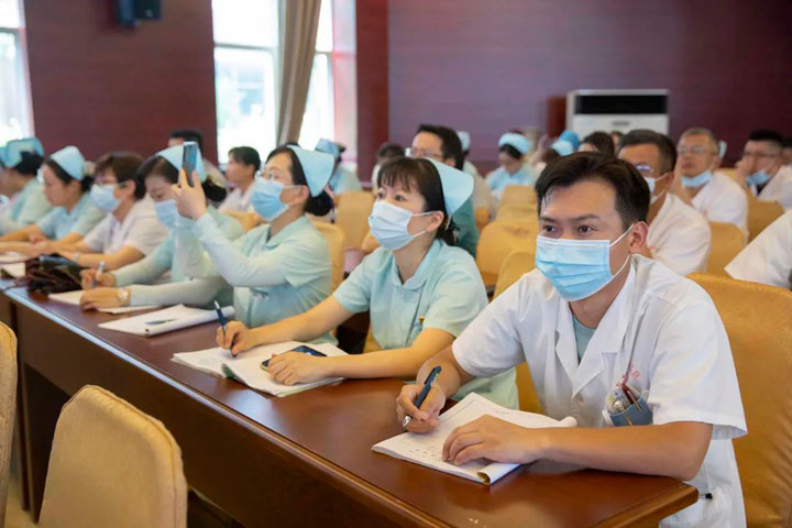 詹一朝副院长首先做总院二季度医疗质量反馈报告。作为医院常态化动态管理手段,詹院长从临床科室运行指标、疫情防控情况、医疗质量单项检查、不良事件或纠纷典型案例分析及下步工作安排等五个方面,全面、详细、实事求是的进行了综合反馈,并通过具体案例对不良事件进行了详细剖析。与以往反馈有所不同,此次反馈直面责任科室和个人,实名制的反馈方式,在直击问题根源的同时,也起到了“红红脸”、“出出汗”的警示效果,敦促相关科室和个人以更加严谨认真的态度纠正错误,及时整改。在对下阶段工作进行安排时,詹院长要求各临床科室要狠抓核心制度和病案质量控制指标的落实,全面推进日间手术,做到应开尽开,应开必开;结合市病种分值库对本科室前十位病种费用逐科进行费用严控成本,并按照三级综合医院评审实施细则征求意见稿积极推进三级医院创建工作。同时,医院将进一步加强对中层干部的管理培训,各相关职能部门也要积极深入临床一线交流指导创建工作。