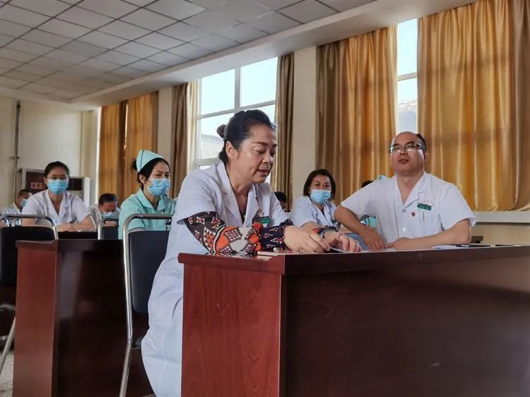 会议现场气氛热烈,内二支部肖枚生书记提出:“活到老,学到老。科主任、护士长不仅要专业技术过硬,提高职业素养,更要学习和研究政策法规和科室管理。把握新医保政策下,从医疗行为、患者就医思维以及医保支付方式的改变等方面进行思考。通过规范医疗行为,优化诊疗路径,发挥品牌技术优势,做好热情服务,真正提高患者满意度,才能保障医院的高质量发展。做一个有技术、有责任心、有爱心、有温度的医者。”