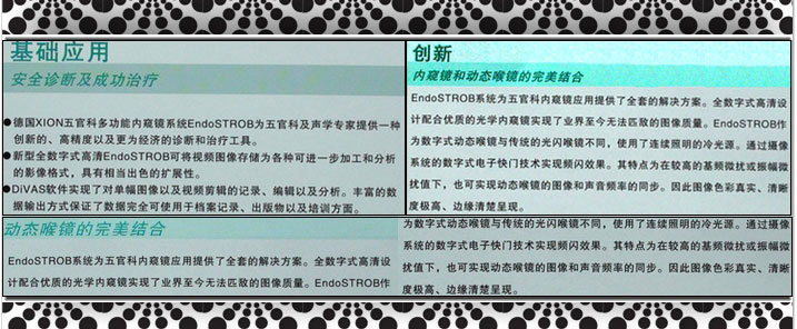 我院新引进的德国艾克松电子喉镜于8月份正式投入使用。该电子喉镜采用新型高效的光纤,具备灵敏而且稳定的控制结构,插入部外径纤细,具有最佳的柔韧性和抗阻力性,使之具有在最小的弯曲范围内自由转动弯曲末端的优越性。高性能的光学系统图像色彩真实、清晰度极高、边缘清楚呈现。