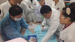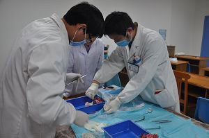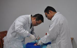 本次培训活动的目的是提高总院胸心外科年轻医生的技术水平,交加强与兄弟医院的交流。活动中,总院胸心外科副主任医师朱胜首先进行了“心脏瓣膜置换手术”理论演讲,随后朝阳医院心脏外科崔振学主任医师进行了瓣膜置换示范手术,最后两科医生亲自在标本上进行模拟手术操作、讲解。