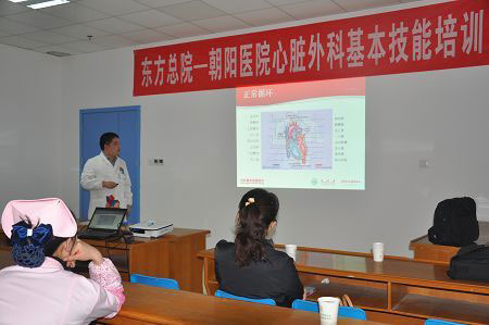 2013年11月21日,由总院医政部主持,在东方总院外科示教室举办了一场“东方总院—朝阳医院心脏外科基本技能培训活动”,二十余名医护人员参加了培训、交流。