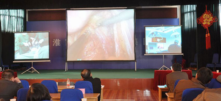 本次培训邀请了安徽省立医院普外科主任黄强教授,蚌埠附院胃肠外科主任姜从桥教授,安徽省立医院对外联络部部长何新阳教授,安徽省立医院胆胰病区主任王成教授,安徽省立医院胃肠外科主任柏亚平教授,安徽省立医院胃肠外科主任朱志强教授等一批省内知名专家参加会议。专家们分别围绕“腹腔镜胃癌根治术”,“日本九州大学病院学习见闻”,“手助腹腔镜在结直肠癌中的应用”及“腹腔镜辅助结直肠癌根治术的发展好现状”四个课题进行讲授。会上,江永强主任通过现场视频直播,演示了腹腔镜下结直肠癌根治术。