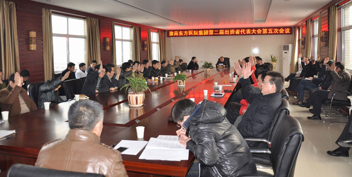2014年2月12日,淮南东方医院集团第二届出资者代表大会第五次会议在总院五楼会议室召开,会议由医院集团董事长江鸿方同志主持,全体出资者代表参与了会议。