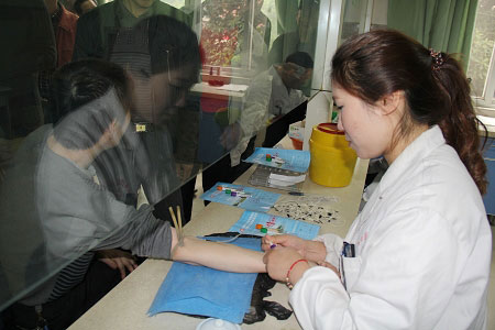 “拳头握紧,放松,不要紧张,不会很疼。”检验人员一边轻声安慰着一边快速将抽取的血样进行分类。血压测量室中,“您知道自己血压偏高吗?平时一定要注意饮食和休息啊!”张素琴主任一边为一位体检人员测量血压,一边不忘叮嘱他几句,旁边排满了等待测量的人们。
