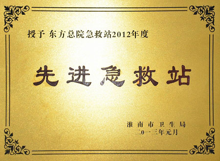 2013年,淮南东方医院集团总院急救站、新庄孜医院急救站获市120急救指挥中心“先进急救站”荣誉称号。