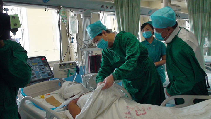 在胸外科专家、医院集团董事长江鸿方的仔细讲解下,张宝顺书记深入地了解了伤者宫某的病情,并亲切地安慰他:到了医院您就放心吧,专家、医护人员会全力以赴,现在对你抢救情况挺好,医生们都告诉我了。并嘱咐病人安心养伤。同时,向病人赠送了慰问品和慰问金。王宏市长也关切的向病人表示,政府高度关心,请他安心治疗。