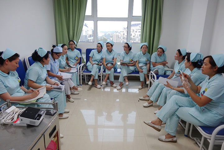 儿科护理工作是以儿童为中心的护理过程,这就要求护士不仅具备丰富的医疗、护理知识,还应掌握专科疾病的护理、健康指导、营养、预防、保健、心理疏导等方面的知识,能根据儿童生长发育过程的生理、心理、疾病及家属的需要给予全面的护理与指导。掌握知识全面而又扎实是实施有效护理及健康宣教的理论基础,我科每个月都会组织业务学习、教学查房及护理查房,在学习中不断提升自身的业务水平。