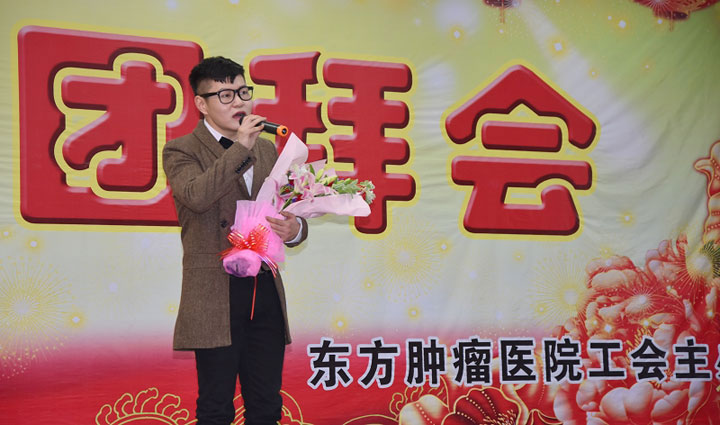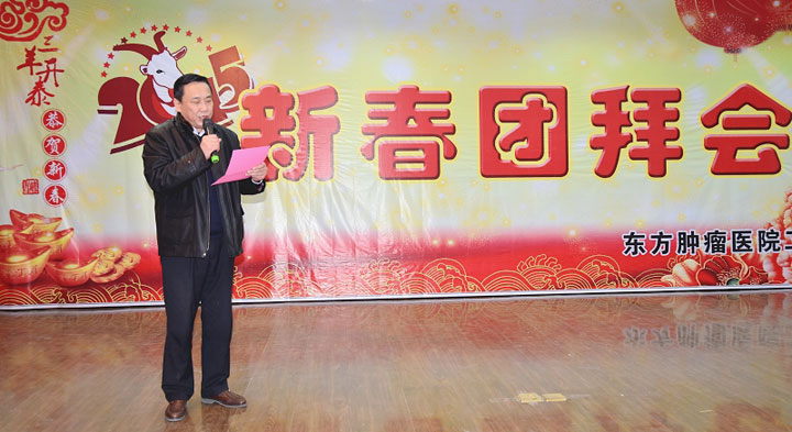 “骏马扬蹄辞旧岁,福羊舞角迎新年”。2015年2月12日下午,东方肿瘤医院多功能厅内红灯高挂,高朋满座,处处洋溢着喜庆与祥和的气氛。医院集团董事长江鸿方、党委副书记朱兴林、朱永其、周涛等集团领导、肿瘤医院院长王云驷、党委书记陈彬等全体领导和全院员工欢聚一堂,共迎新春的到来。