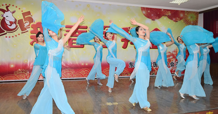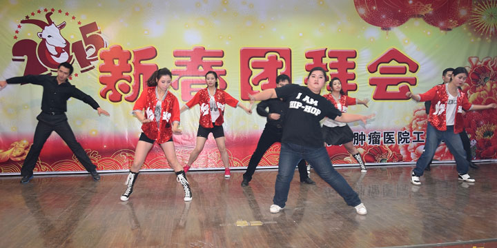 团拜会在舞蹈《吉祥颂》中拉开序幕。荡气回肠的《盛世欢歌》、欢快喜庆的《恭喜发财》让人们强烈地感受到节日的快乐;配乐诗朗诵《我爱你医师》,抒发着肿瘤医院医务人员对医疗岗位的尊重与热爱;一段清雅古朴的《烟雨江南》,仿若又将江南如诗如画般的烟雨美景重现;一曲深情演绎的《时间都去哪儿了》,引起全场共鸣,那种对父母浓浓的爱意和思念之情,让人不禁感慨白驹过隙,蹉跎岁月。动感欢快的《小苹果》,更是强烈地呈现出肿瘤医院年轻人乐观、积极向上的心态,幽默恢谐的歌舞表演不断引来观众的阵阵喝彩与掌声,将团拜会推向高潮。