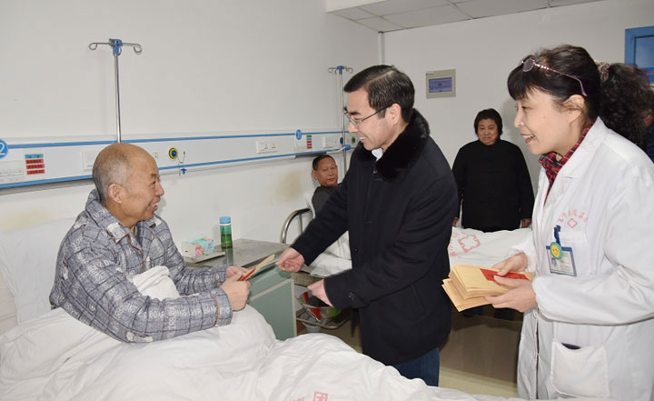 2月9日上午,矿业集团总会计师董淦林一行在院长王云驷的陪同下,前往肿瘤病区慰问住院职工。在化二病区,董淦林与住院职工亲切交谈,详细询问了他们住院、生活情况,并叮嘱他们要放下思想包袱,配合医生好好治疗,过个愉快的春节!