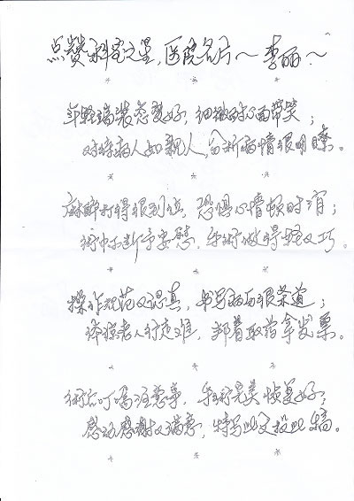 建议同行学李丽,为病人造福多美好;