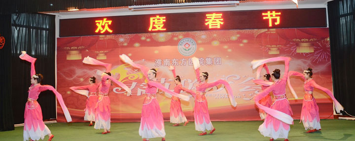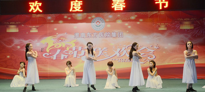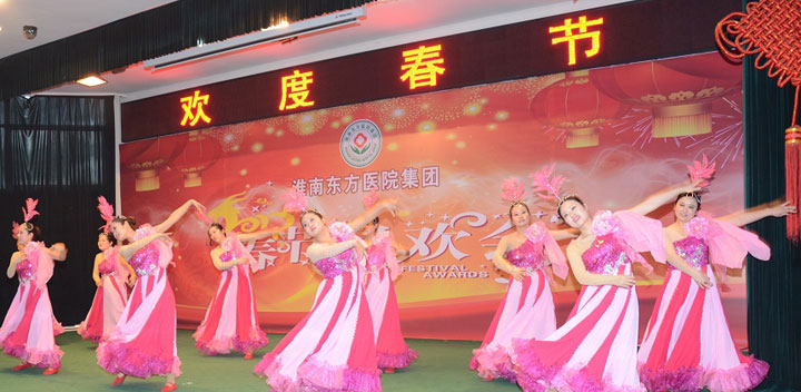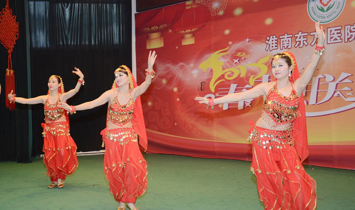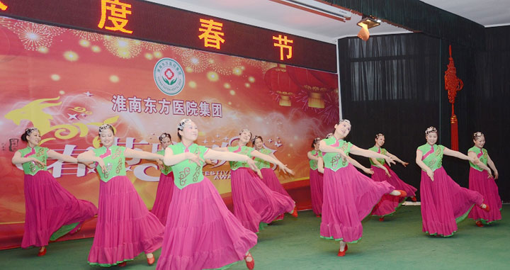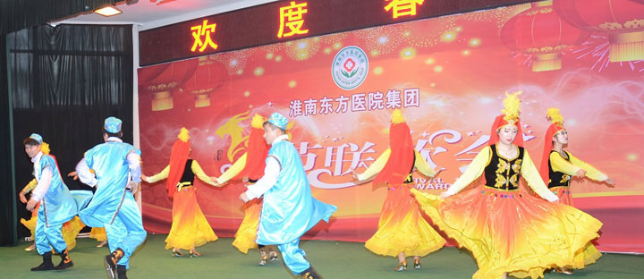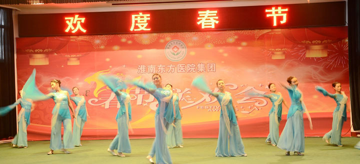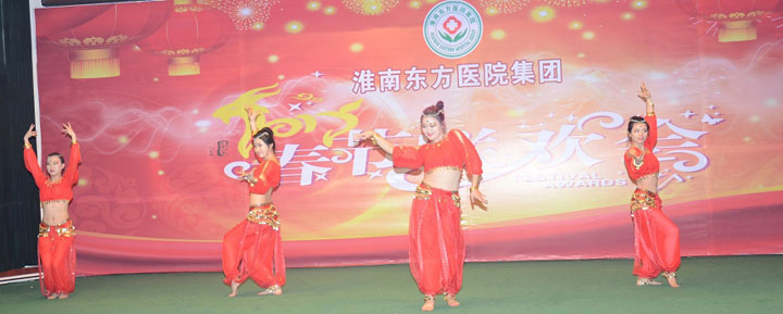 随后,热烈奔放的开场舞《拜新年》拉开了文艺演出的帷幕,舞蹈《江山》、《汉唐韵》、《大爱东方》、《醉山寨》等共计18个文艺节目纷纷闪亮登场。由各医院文艺爱好者组成的演出人员载歌载舞,宣染欢乐、增添正能量。台上精彩纷呈,厅内欢声笑语,全体东方人沉浸在欢乐的氛围中。
