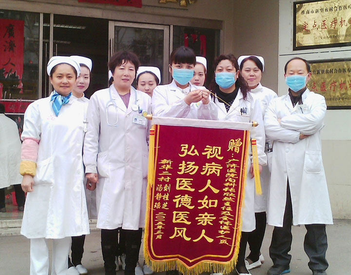 2015年3月23日上午,已故患者汤大爷的两位家属来到淮南东方医院集团广济医院大门口,燃放大红的鞭炮,并将印有“视病人如亲人,弘扬医德医风”的鲜红锦旗送到综合病区主任张欣然、护士长孙炜、主治医生蔡跃伟及全体医护人员面前,专程来表达对综合病区医护人员的感激之情,激动之情溢于言表。患者爱人刘女士和妹夫方先生激动地拉着医护人员的手满含热泪地说:“感谢您们的精心治疗,感谢您们无微不至的照顾”。