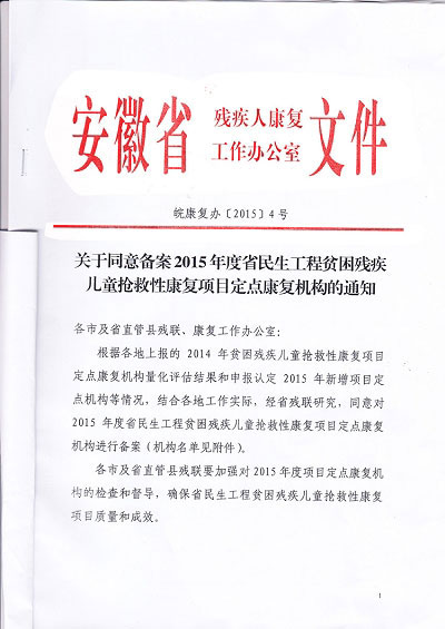 为了做好贫困残疾儿童抢救性康复项目,东方总院引进了儿童康复专业人才,添置了大量的儿童康复设备及器材,为做好儿童康复事业打造了坚实的设备、人才、技术基础,得到省残联和评审专家的高度评价。2015年3月,经过层层评定审核,东方总院康复科以先进的设备、优势的技术和完善的环境,一举被评定为淮南市脑瘫康复定点机构,也是我市唯一一家脑瘫康复机构。这意味着,淮南市脑瘫儿童有了规范的康复机构,免去了长途奔波之苦。
