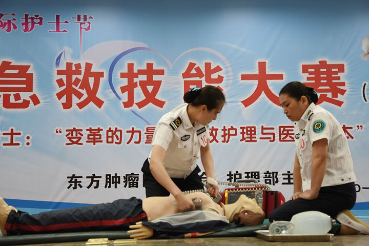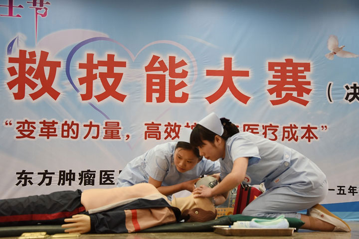 五月的阳光温暖宜人,初夏的清风沁人心扉。5月11日下午,在东方肿瘤医院多功能厅,近百名护士与医院领导欢聚一堂,以急救技术比武的形式共庆“5.12”国际护士节。