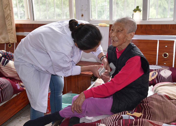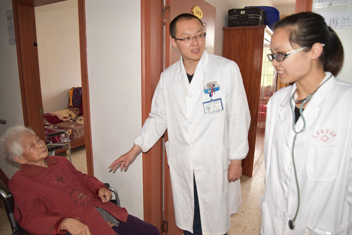 在养老院三楼,肿瘤医院团委书记、骨科主任张厚启带领两名医师为行动不便的老人一一进行常规检查。在九十八岁高龄的孙奶奶床前,看到老人虽然年事已高,但思维清晰,口齿清楚,精神状态仍然很好,大家都纷纷祝愿老人要保重身体,争取成为“百岁老寿星”。