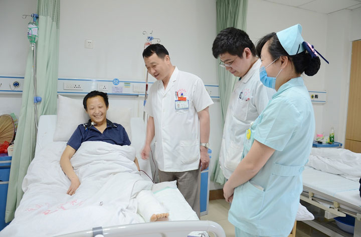 手术的成功仅算治疗成功的一半,术后“抗感染、抗凝血、抗痉挛”更加重要。经过医护人员的精心护理,半个月后,移植的骨和皮肉都顺利成活。看着自己曾经血肉淋漓,现在已经基本长好的脚踝部,李师傅和工友们在病房里谈笑生风,心情大好地和邻近的病友开着玩笑,并对鲁木主任,陶勇主任,徐江发主治大夫和骨科的医护人员们一连串的表示感谢!