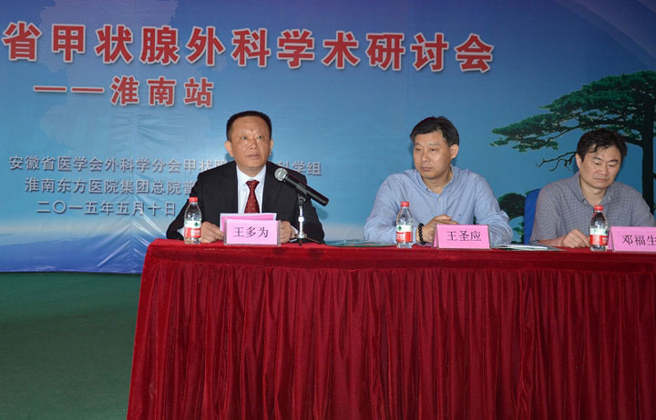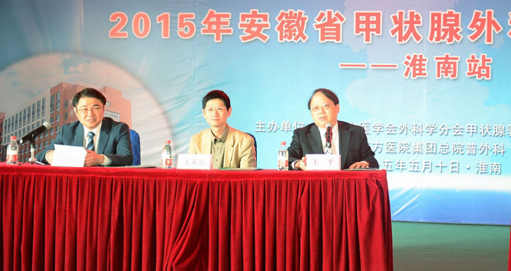 本次研讨会有幸邀请到国内著名的甲状腺专家、浙江大学第二附属医院甲状腺外科主任王平教授,安徽省医学会外科学分会甲乳外科学组主任委员、安徽肿瘤医院肿瘤外科主任王圣应教授,安徽省医学会外科学分会甲乳外科学组副主委、安徽省立医院普外科行政副主任邓福生教授,安徽省医学会外科学分会甲乳外科学组副主委、皖南医学院弋矶山医院甲乳外科主任王亚兵教授亲临会议现场。