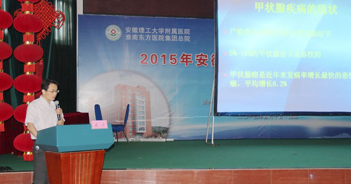 孟夏时节,草木欣然。在这栀子飘香、榴花明艳的美好时节,由安徽省医学会外科学分会甲状腺乳腺外科学组、淮南东方医院集团总院普外科共同主办的《2015年安徽省甲状腺外科学术研讨会—淮南站》于5月10日在东方总院顺利召开。来自浙江、安徽及各兄弟医院的200多名专家学者齐聚一堂。研讨会开幕式由东方总院副院长江永强主持。