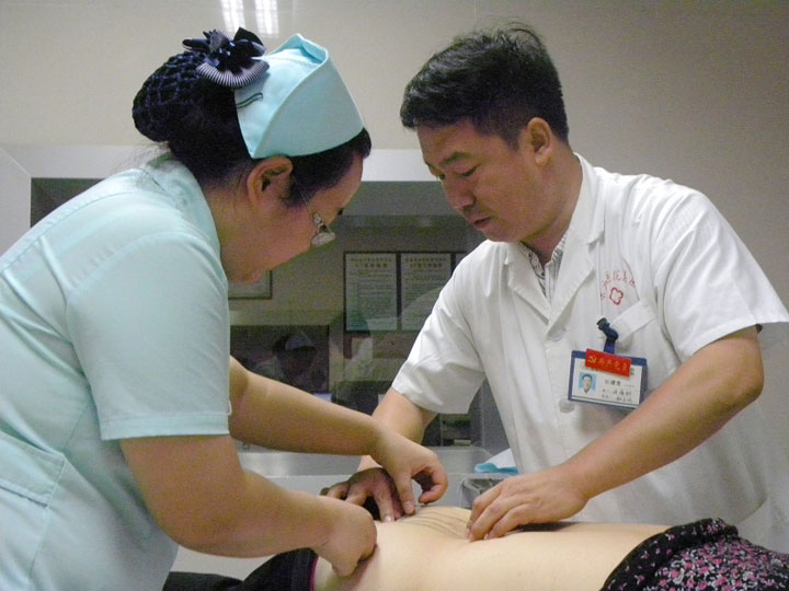 7月10日下午4:30,杜建生主任担任主刀,和王瑞医生一起为周奶奶做了“CT引导下经皮穿刺注射胶原酮+臭氧溶解术”微创手术。手术仅用半小时便顺利完成。术中梁护士伫立在周奶奶身边,有意识地与周奶奶交谈,分散周奶奶的紧张情绪,观察着周奶奶的生命体征。术后第三天,到7月13日下午,周奶奶便能佩戴腰围下床活动,疼痛缓解了很多。7月14日周奶奶已经康复出院。