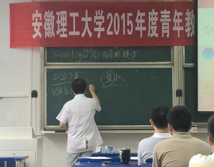 2015年6月12日,江涛医生收到“安徽省第二届关节镜高峰论坛”的邀请函。这是淮南市唯一一位能在论坛上发言的人选。在论坛上发言的有北京301医院、我国全军关节镜专业委员会委员刘玉杰教授,中华医学会运动医疗分会候任主委、APKASS2016主席、上海华山医院教授陈世益等国内高端人才同台讲课。论坛给的题目是《前交叉韧带重造之我见》。江涛医生接到通知后,认为自己资历浅,年纪轻,多次给论坛筹备处婉言请求更换人选,组委委给予的答复是:讲课靠的是实力,是业务水平,不是靠年纪靠资历。江涛推脱不掉后,用了一个月的时间完成了讲稿,于2015年7月12日寄往论坛筹备处,顺利通过,并得到好评。