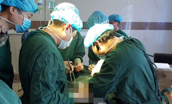 患者王某,67岁,近两年来常感觉腹部有下坠感,最近发现包块,9月21日到新庄孜医院外科就诊,经治医生在诊疗时发现患者肿瘤指标AFP值异常高(超过2000ng/ml),高度怀疑有肿瘤。经腹部CT、彩超进一步检查,报告显示:肝左叶占位,即向总院副院长江永强汇报。江院长对患者的病情高度重视,组织总院外科专家团队对患者进行了会诊,经仔细讨论,制定了周密的手术治疗方案。9月28日上午,由江院长主刀,在总院外科徐友标、孟云两位主任协助下,经过1小时45分钟,顺利实施了肝左叶肿瘤切除术,切下一5cm×6cm大小的肿块。