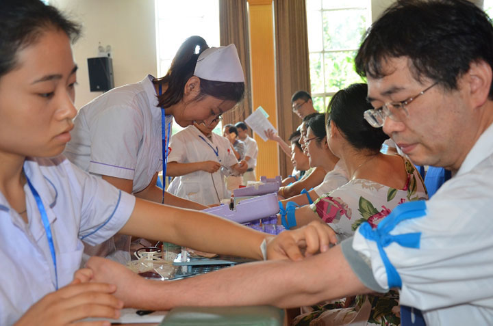 为缓解我市临床用血紧张的情况,弘扬社会美德,医院集团团委于8月14日组织了义务献血活动。虽已立秋多日,当天依然闷热非常,但这挡不住职工的献血热情。东方医院集团各医院共有200多人报名参加献血活动。