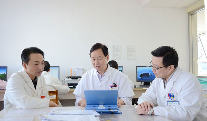 消化科张淮民主任与吴凯、王佐两位副主任讨论疑难病例 |